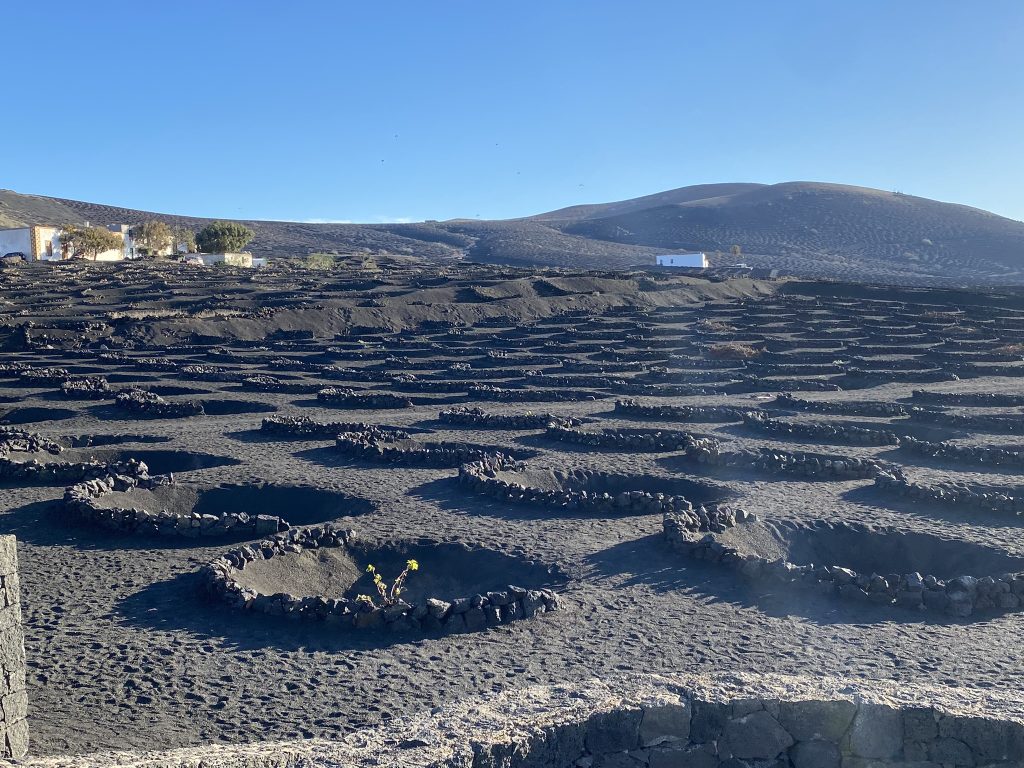 La Geria: Esta zona está llena de plantaciones de vides y bodegas. En todas ellas puedes hacer alguna cata de vino y queso de la isla. Desde la carretera puedes ver las plantaciones, pero te recomendamos que pares en alguna de las bodegas, ya que puedes bajar y pasear entre ellas gratis para poder apreciarlas como se merecen.